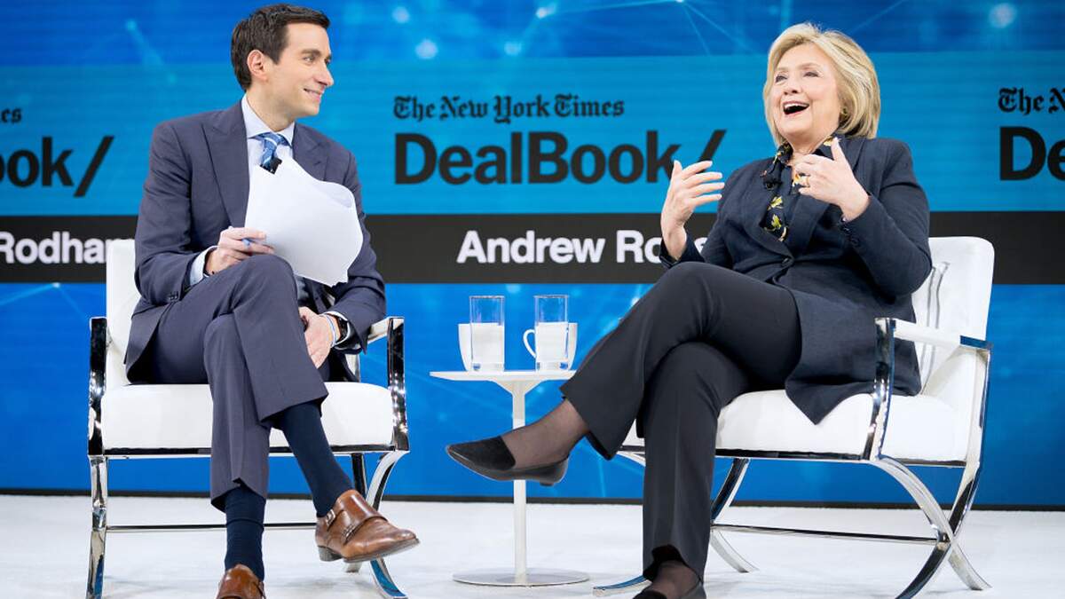 Appearing with Andrew Ross Sorkin for The New York Times’ “DealBook” series and discussing the impeachment proceedings targeting President Trump over his dealings with Ukraine, former failed presidential candidate Hillary Clinton assayed an attempt at comedy, asMediaitereported, growling as she tried to imitate President Trump having a conversation with Russian President Vladimir Putin and Putin bellowing, “Vladimir just told me in my last secret phone call with him, get Ukraine responsible for that!”