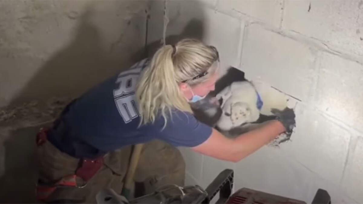 WATCH: Firefighters Rescue Dog Trapped In Concrete Wall