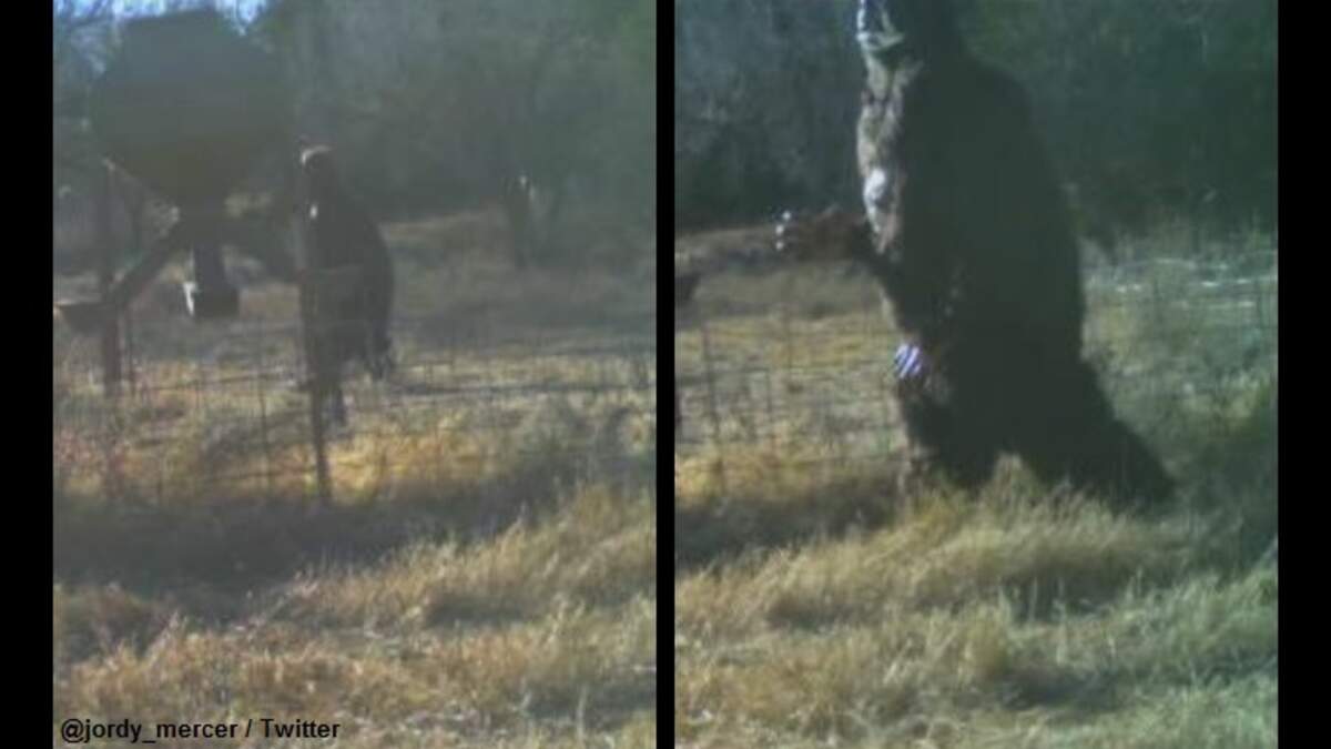 This past Wednesday, Mercer tweeted two images which he says were taken on "back to back days" by the device and asked, "anyone know what this is?" The first photo, captured at 3:41 in the afternoon this past Monday, shows what appears to be a tall, bipedal creature in the distance. The second image, produced by the camera at around 3 PM the next day, is a bit more distinct as it features a fairly sizeable animal that is clearly walking on two legs.